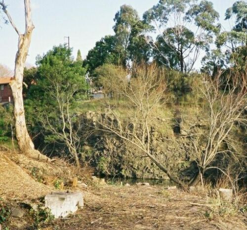 An interesting find was made by workers clearing undergrowth and willow trees from the banks of the Merri Creek in July 2004. A 45 square centimetre concrete block was found during works by the City of Darebin which now incorporates Northcote. The top of the white painted block has four upright steel bolts and a coating of glue which indicate it had been used as the base for a plaque.