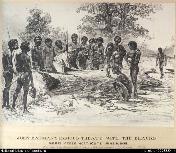 Batman negotiated Batman's Treaty with local Aborigines to rent their land on an annual basis for 40 blankets, 30 axes, 100 knives, 50 scissors, 30 mirrors, 200 handkerchiefs, 100 pounds of flour and 6 shirts.