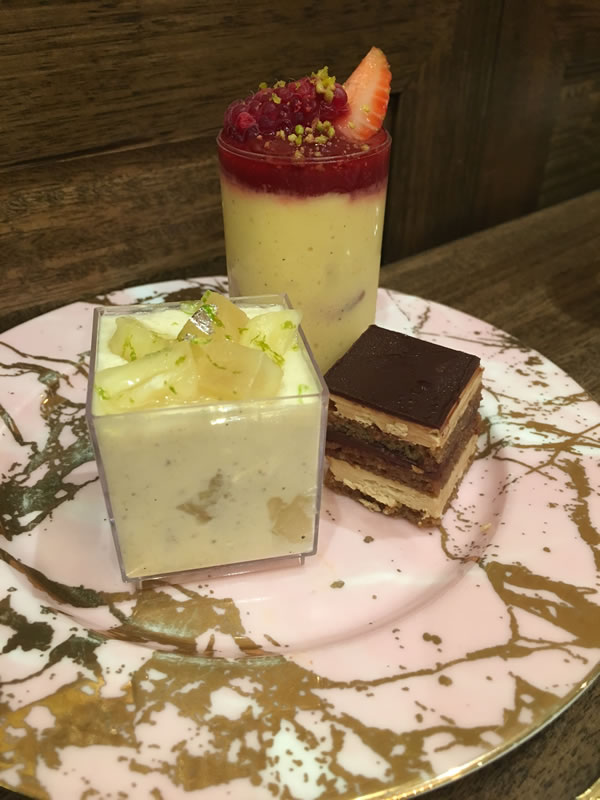 The desserts were to die for. Fraisier Verrine, a classic French delight with sponge and strawberry, a raspberry and vanilla spoon, a Mini Opera which was reminiscent of tira misu and finally a pineapple panna cotta. All but the Mini Opera are gluten free.